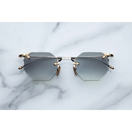 1930's inspired octogonal rimless frame construction. A sharp shooter on the straight and narrow, you watch these dusty streets through rimless ‘30s-inspired spectacles, featuring high set temples and solid octagonal lenses, which silently remind observers that you are the fearless gun-for-hire, not the drunken deputy.