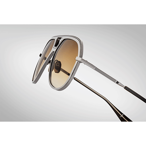 Classic, late-‘70s-inspired aviators in titanium with sculptural acetate temple tips, featuring a V-shaped profile, distinctive double-bridge and temples with dual-tone embellishments and hairline epoxy details. Wearing worldly limited-edition aviators handcrafted in Japan utilizing 100% beta titanium is the only way to fly, a streamlined affair designed with refinement and relevance, representing the epitome of executive elegance.